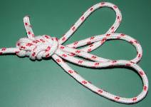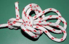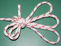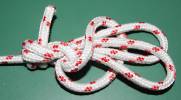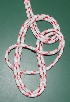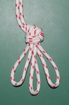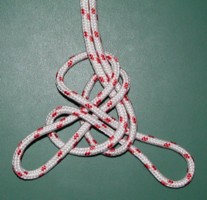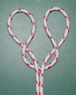 The French Bowline is also called the Portuguese Bowline in some books and websites, but I've seen other websites (such as this one) which describe the Portuguese Bowline slightly differently. Rather than bringing the end of the rope through the small loop in picture 1, you bring the end of the rope on top of the small loop. According to some people, this is the difference between the French and Portuguese Bowlines. I haven't been able to find any strength ratings for the French or Portuguese Bowlines, but they would appear to have a similar strength rating as the basic Bowline because the core knot configuration is the same.